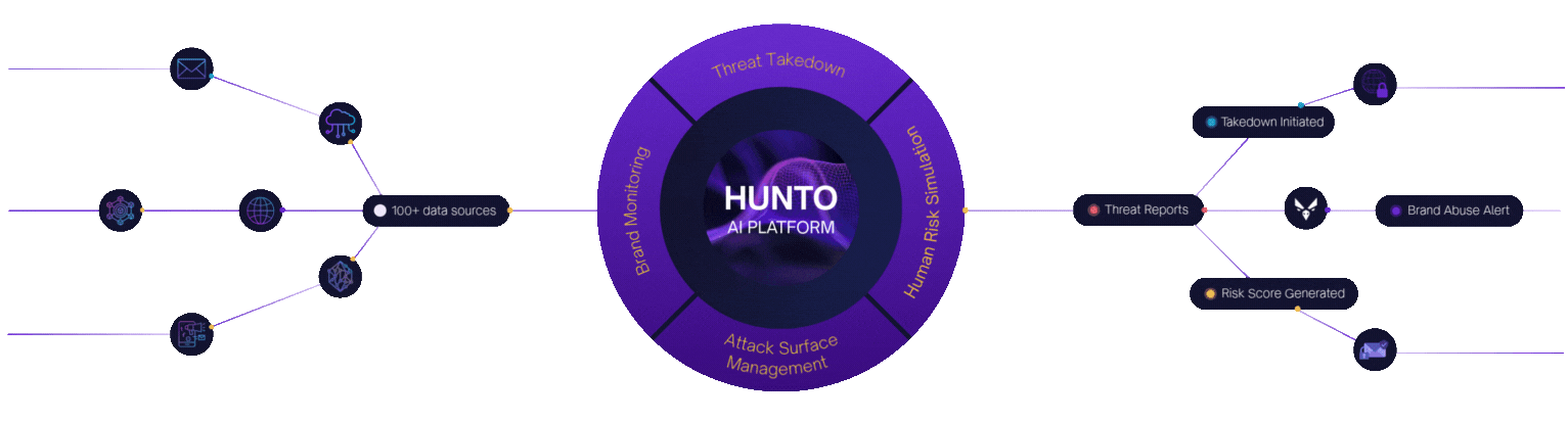 Hunto AI helps you with Attack Surface, Brand Monitoring, Human Risk, Takedown, and DMARC+ with audit-ready evidence as per regulations. Powered by AI agents that work on your behalf.